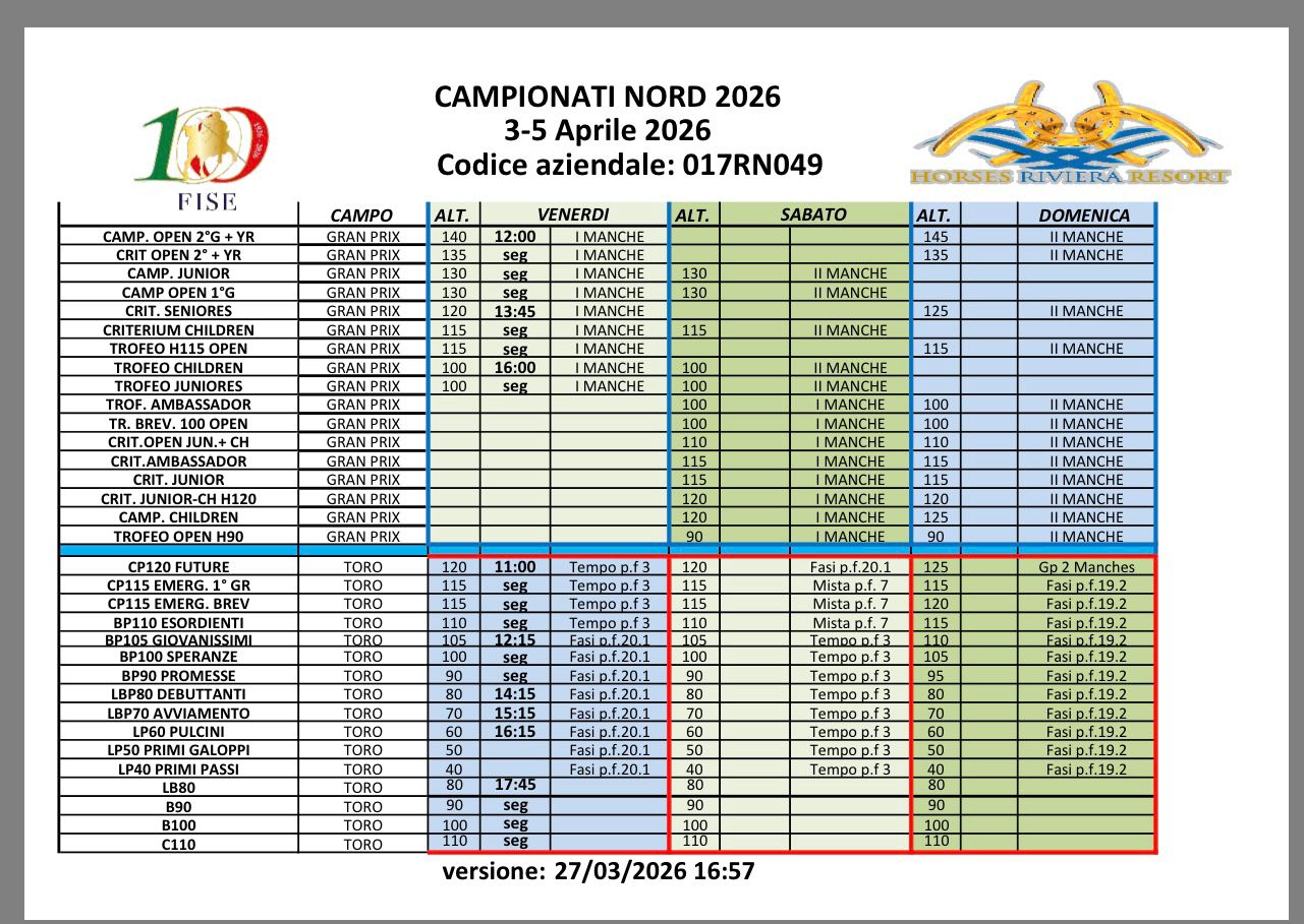 CAMPIONATI NORD ITALIA - CATEGORIE AGGIUNTE (3 gg) 02/04/2026 - 05/04/2026 RIVIERA RESORT